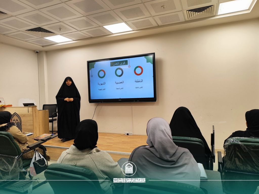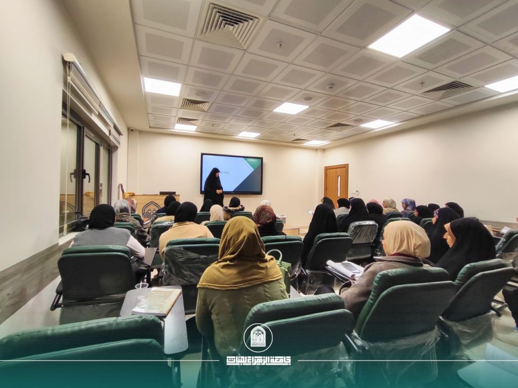 برعاية السيدة رئيسة جامعة الزهراء (ع) للبنات، أ.د. زينب السلطاني، وبإشراف السيدة عميدة كلية التربية، أ.د. ايمان سمير بهية، أقامت كلية التربية/ قسم اللغة العربية ورشة علمية موسومة «ثالوث الحصانة: العفّة والحياء والحجاب»، قدّمتها د. خلود حميد أحمد، وذلك في قاعة الصيدلة.