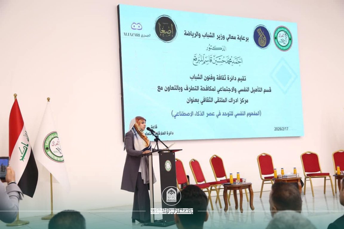 شاركت كلية التربية في جامعة الزهراء للبنات في الملتقى العلمي الذي أقامته وزارة الشباب والرياضة العراقية ممثلةً بـ دائرة ثقافة وفنون الشباب ضمن برنامجها السنوي الموسوم بـ "مفهوم التوحد وعصر الذكاء الاصطناعي"، وذلك بدعوة كريمة وُجّهت إلى الجامعة من قبل قسم التأهيل النفسي والاجتماعي لمكافحة التطرف وبالتعاون مع مركز إدراك للاضطرابات النفسية.