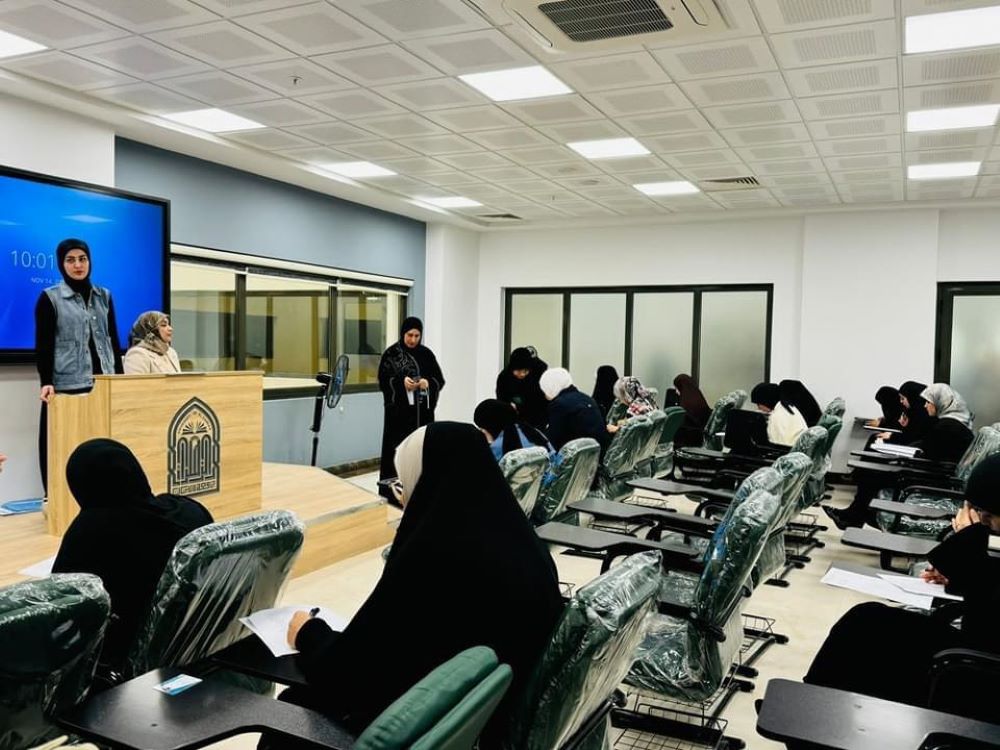 Pharmacy Faculty Dean Assistants Lect. Dr. Alaa Abd Al-Hussein Naeem, the Scientific Assistant, along with Lect. Dr. Farah Abd Al-Hussein Kazem, the Administrative Assistant, conducted an inspection tour to oversee the final midterm examination for the first semester at Al-Zahraa University for Women.