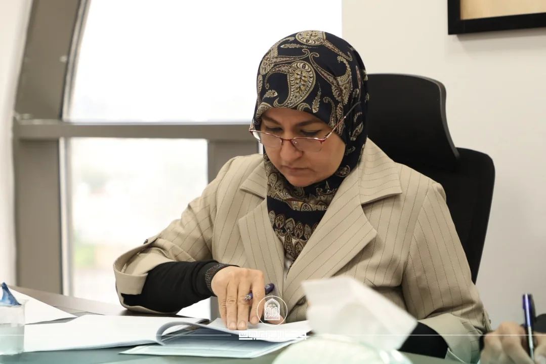 • Director of the International Accreditation Department / Scientific Supervision and Evaluation Authority / Ministry of Higher Education and Scientific Research , among the corridors of Al-Zahraa University, for Women .