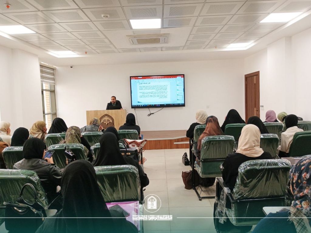 College of Education Contributes to University Team’s Qualification for 9th “Intellectual Challenge” Competition Final English Department Holds Workshop on Role of Language in Combating Violent Extremism Department of English Holds Training Course on Turning Ideas into Short Stories College of Education Holds Memorial Ceremony Commemorating Martyrdom of Imam Ali (Peace Be Upon Him) College of Education Participates in Forum on “Autism Concept and the Age of Artificial Intelligence” College of Education presents Scientific Course Titled “Supplications in the Holy Qur’an” Highlights Cognitive and Educational Dimensions of Prayer College of Education Dean Honors Students for Winning “Ramadan Intellectual Challenge” College of Education Organizes Workshop Entitled “Biotechnology” in Cooperation with Women’s Empowerment Department College of Education Students Shine in Ramadan “Intellectual Challenge,” Securing First Place for Al-Zahraa University Women’s Affairs Division Organizes Lecture Titled “The Art of Ethics and the Culture of Apology within the Legal Framework” in Cooperation with College of Education Training Course Titled “The Art of Public Speaking” Enhances Students’ Skills at College of Education College of Education Signs Scientific Twinning Agreement with Its Counterpart at University of Kufa Another Distinguished Participation by Art Education Department at Fourth Edition of Ain Al-Hayat Festival Under the Slogan “Heirs of the Ḍād Letter”… College of Education Celebrates Department of Arabic Fourth Cohort Graduation College of Education at Al-Zahraa University (PBUH) for Women Hosts Academic Debate Among English Departments from Iraqi Universities Department of Special Education Holds Scientific Workshop on Modern Strategies for Addressing Speech Disorders Under the patronage of the President of Al-Zahraa University (PBUH) for Women, Prof. Dr. Zainab Al-Sultani, and the supervision of the Dean of the College of Education, Prof. Dr. Iman Samir Bahiyya, the Department of Special Education at the College of Education, in cooperation with the Continuing Education Center, organized a scientific workshop entitled “Modern Strategies for Dealing with Speech Disorders.” The workshop was attended by a number of faculty members and specialists in the field. The workshop was delivered by Dr. Ya‘mur Rahim Hussein, General Supervisor of Al-Kafeel Institute for Speech and Language Disorders, which is affiliated with the Al-Abbas Holy Shrine. The lecture addressed the latest scientific and practical approaches to diagnosing speech and language disorders and methods of dealing with them, along with presenting training models and therapeutic mechanisms that contribute to developing the skills of specialists and practitioners in this area. The workshop aimed to enhance scientific awareness of speech disorders and to equip educational staff with modern strategies that support students and improve their ability to communicate effectively. It also sought to strengthen cooperation between academic institutions and specialized centers in ways that serve the educational and rehabilitative process.