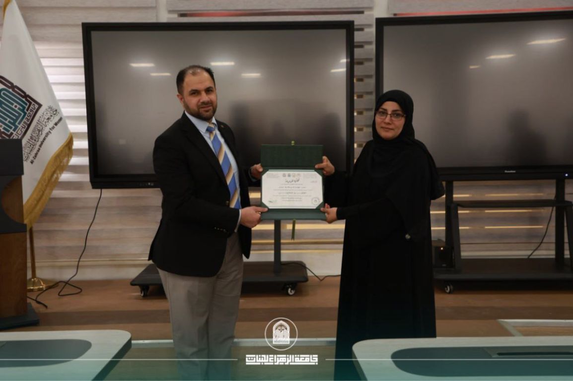 Prof. Dr. Ghaida’ Abd Al-Hussein Al-Mulla, Dean of Engineering and Information Technology Faculty represented Al-Zahraa University for Women, in the scientific symposium entitled “Towards Comprehensive Sustainability: Environmental Management and Cosmic Identity,” organized by Excellence Centre for Creativity and Development at the American University in Baghdad, in cooperation with the Institute for Continuous Education.