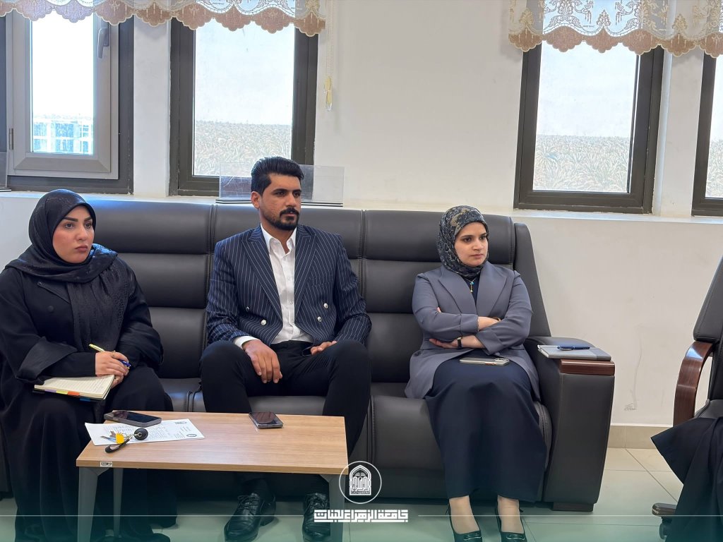 The Dean of the College of Health and Medical Technologies, Assist. Prof. Dr. Ali Jasim Mohammed Al-Khafaji, held a meeting with the heads of divisions and units of the college, in the presence of the Assistant Deans for Scientific Affairs and Administrative Affairs. The meeting aimed to discuss work mechanisms and administrative organization in a way that enhances performance efficiency and ensures the smooth running of work.